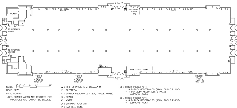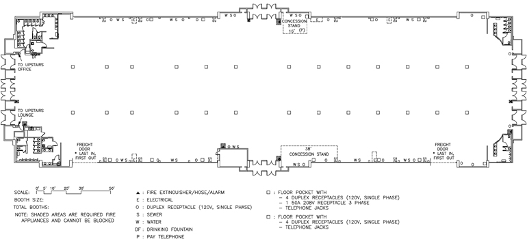Each floor power box allows phone and hi-speed data hook-up between any booth spaces in the building