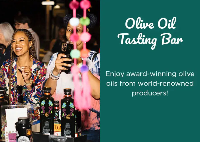 Every ticket includes a Souvenir Tasting Glass; tastes of cocktails, spirits, wine & olive oil, DJ & Dancing, Food Bites and Access to the Silent Auction.